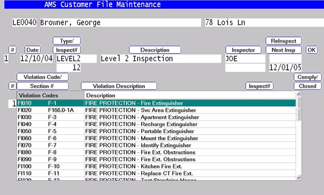 This screen lets add and modify the violations relating to an inspection.