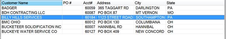 Choose the Customer from the list of customers on file. If this is a new customer then the manager needs to use Customer Maintenance to add a new customer and set up his billing information and Rates. If you have authorization then you can add a new customer or change existing customer information at this time.