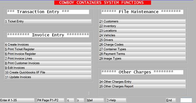 From the menu you can select the function you wish to perform. A second page of the menu will give you the reporting options.