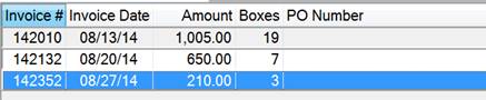 All of this customer’s invoices will be listed. An invoice may be selected and the original invoice print out will be displayed and can then be sent to a printer.