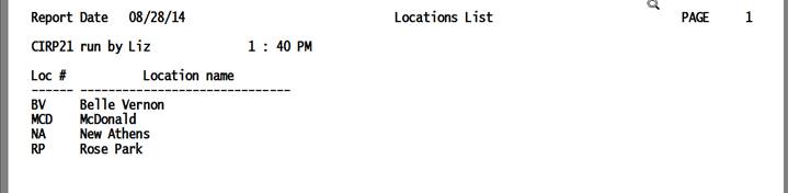 Locations List