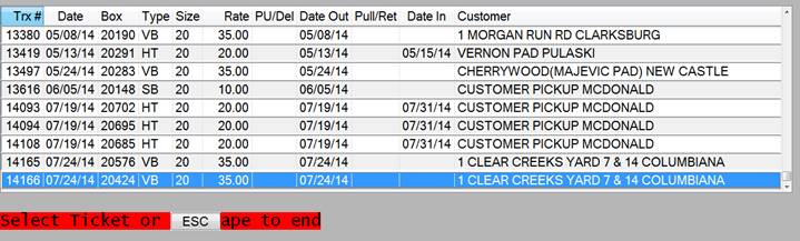 All of this customer’s tickets will be listed. A ticket may be selected and the original ticket print out will be displayed and can then be sent to a printer.